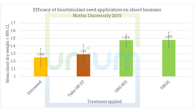 So not only do you get the normal benefits you would expect from a Unium biostimulants seed treatment: